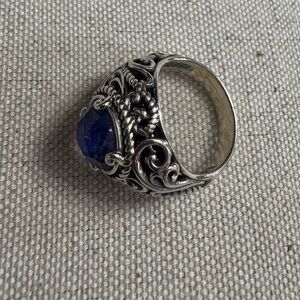 Sterling 925 Ring with large Sapphire Blue Gemstone at Center. Beautiful design