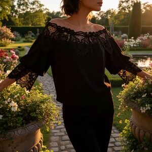 #A257 CQ by CQ Romantic Black Lace Off-Shoulder Chic Vintage Top NWOT L