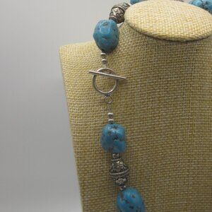 EUC, turquoise blue colored stone and silver/pewter tone spacers, 18" total length, toggle clasp