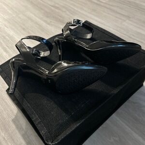 Karl Lagerfeld Black Patent Leather Pointed Toe Ankle Strap Heels US 8.5