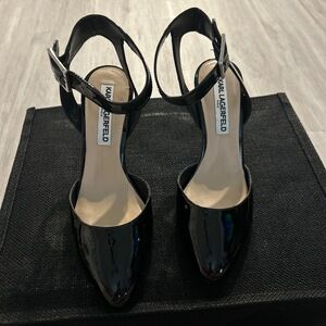 Tags: Karl, Lagerfeld, Heels, Black, Patent, Ankle, Strap, Pump, Womens, Shoes