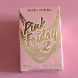 Stylish necklace inspired by Nicki Minaj. Features bold pink and gold tones. Perfect for a statement look. 0.25 fl oz small tester