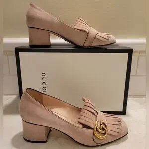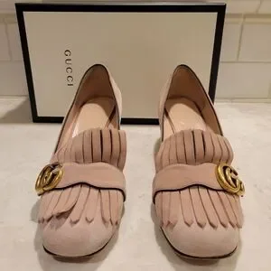 Gucci GG Marmont Pink Blush Fringe Loafer Pumps