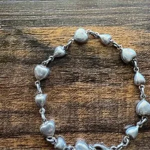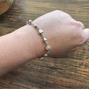Sterling Silver 925 Heart Charm Bracelet 7.5”