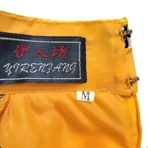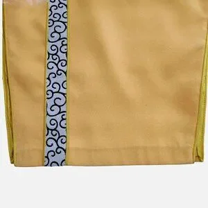 • Color: Golden yellow with silver/black swirl brocade trim