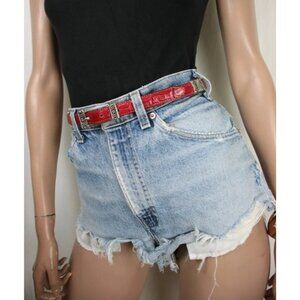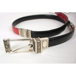 This vintage reversible belt for women features a bold black and red design with a silver tone finish, perfect for adding a pop of color to any outfit. Made of durable metal, this belt is not only stylish but also versatile, as it can be worn in two different ways depending on your mood or the occasion. The size L/34 makes it a comfortable and fashionable accessory for any woman's wardrobe.