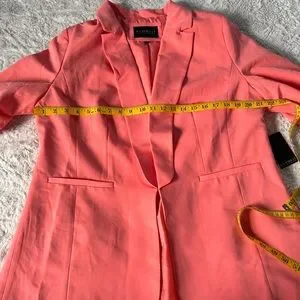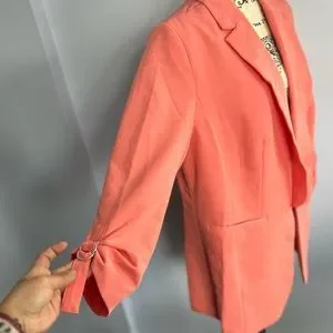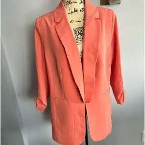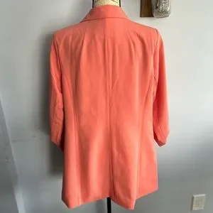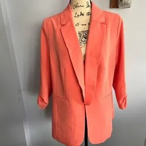 Stylish coral blazer by Eloquii. Perfect for professional or casual wear. Features a classic design with a modern twist.