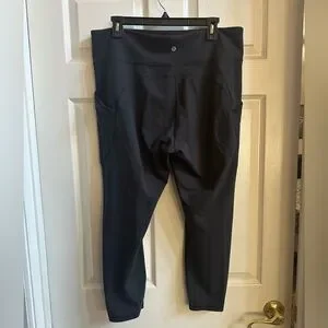 Black Lululemon Leggings! They are a cropped length. There is some mjnor pilling as pictured, but otherwise excellent condition! Size 16