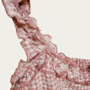 COQUETTE Feminine GINGHAM Eyelet PINK Ruffled Women's CROP Top CAMI EUC