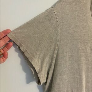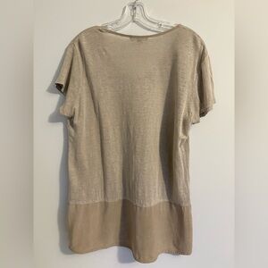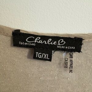 Charlie B Tan/Beige V Neck 100% Linen Short Sleeve Top Beachy Womens Size XL