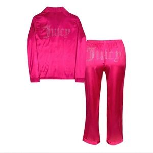Juicy Couture Pink Long Sleeve Satin Rhinestone Pajama Set