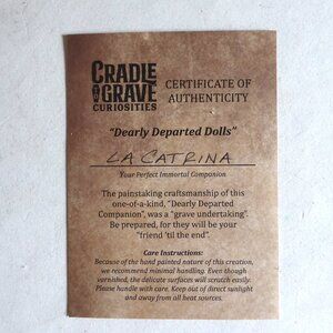 This is a one of a kind piece. Comes with Certificate of Authenticity, 2 Day of the Dead illustrated cards and original tag. This was acquired from an Oddities convention. A talented artisan was selling their spectacular creations in their booth. This item has never been displayed. Perfect for Halloween decor or everyday. (See photos for details) I am the original owner. It has been in climate controlled storage since purchased. Comes from a pet and smoke free home.