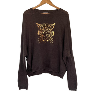 Wooden Ships sweater, mohair sweater, wool sweater, lightweight sweater, tiger sweater, tiger graphic, tiger face, oversized sweater, brown sweater