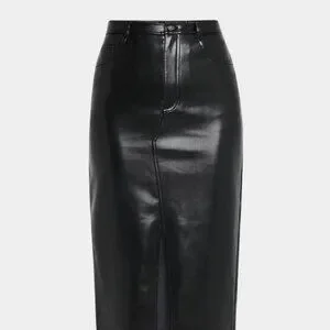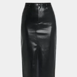 Cinq à Sept Tana Faux Leather Black Midi Skirt NWT Size 6 – Front Slit, Five-Pocket Style