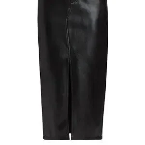 This skirt offers effortless day-to-night versatility—dress it up with heels and a blouse or keep it edgy with a bodysuit and boots. The five-pocket design gives it a jeans-inspired structure, while the faux leather finish delivers sleek sophistication.