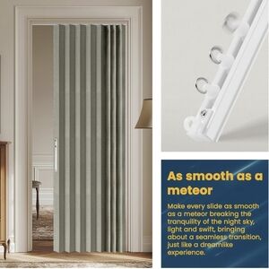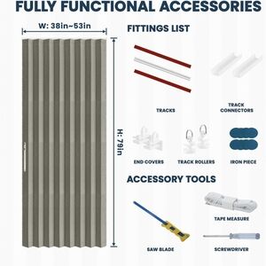 NIB AJAZZ 100% Blackout Accordion Door Invisible Folding Doors Interior Magnetic Door Curtain for Bedroom Living Room Kitchen Doors Curtains Sets Included Tracks (1Panel, 53W x 79 L, Grey)