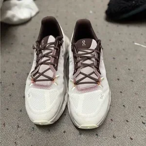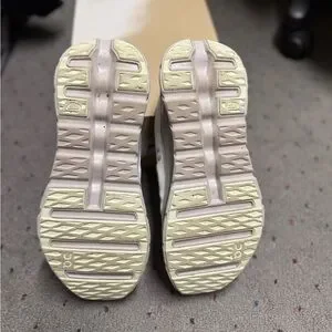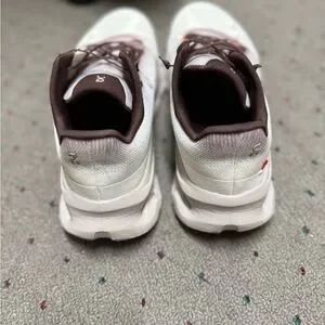 Sleek and stylish On Running sneakers. White base with purplish accents. Perfect for active wear.