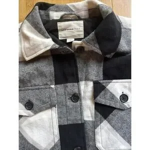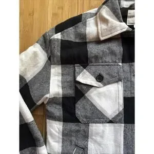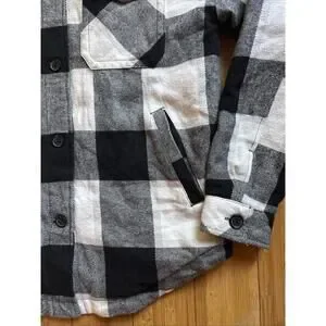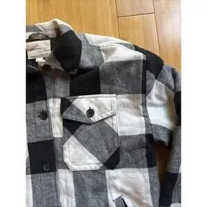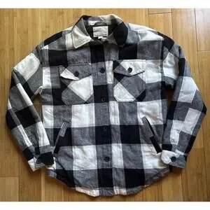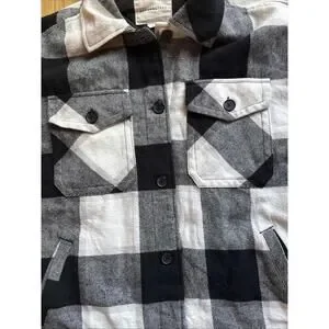 Aeropostale Women’s Quilted Flannel Shirt Jacket Small Black White Plaid Shacket
