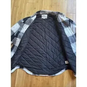 This women’s Aeropostale quilted flannel shirt jacket (shacket) in size small is the perfect blend of cozy and casual. It features a soft cotton flannel shell in a classic black, white, and gray plaid pattern with a quilted polyester lining for added warmth. Great for layering in cooler seasons, whether you’re running errands or heading outdoors.