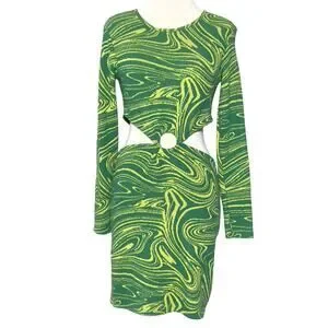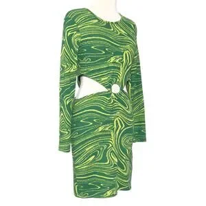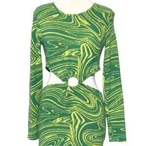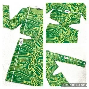 This unique dress from Zara is new without tags, and has a gorgeous green pattern! With cut outs this jacquard size large mini dress is a great piece to add to your closet!