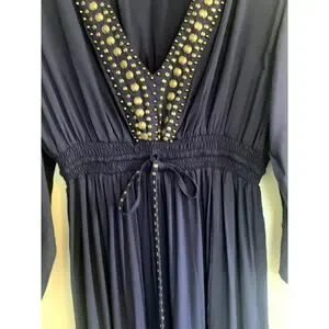 Back From Bali Blue V Neck with Embellishments Maxi Dress Short Sleeves Small