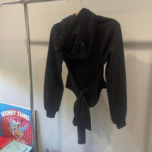 devil hoodie, bow tie, goth fashion, punk style, black hoodie, horn details, indie clothing, small fit, edgy hoodie, spooky aesthetic