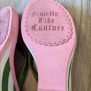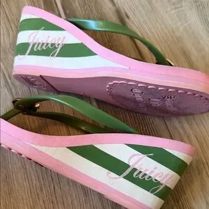 Stylish Juicy Couture wedges. Green straps with pink soles. Perfect for casual wear. Super Cute in Excellent Condition