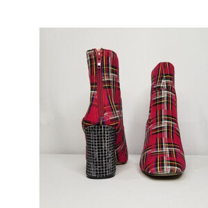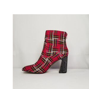 Betsey Johnson Women's Rayln Plaid Boots Size 8 Red/Silver/Black NWT