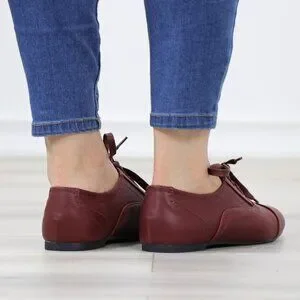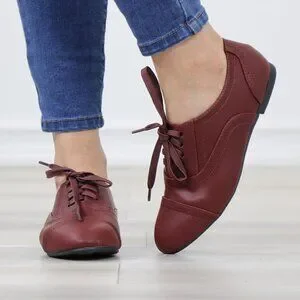 Wine Synthetic Leather Lace up Flat Heel Oxford Style Shoes
