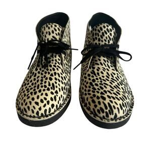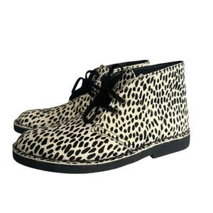 Clarks Women's Desert Boots Chukka Faux Animal Print White Black Fur Rare 9.5 M