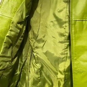 Elevate your style with this chic green leather jacket. Perfect for any occasion, this lined leather jacket offers both comfort and elegance.