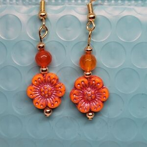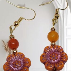 Brighten your look with these stunning orange floral earrings. Perfect for any occasion. 232