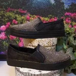 Sleek sneaker with gorgeous front panel of marcasite-style reflective beads & rhinestones plus air-cooled memory foam insoles