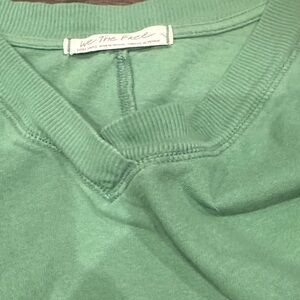 Stylish green crop top with V-neck. Loose fit. See pics of small holes. Soo comfy and holes add character to this tee.😊 Bundle it and enjoy!