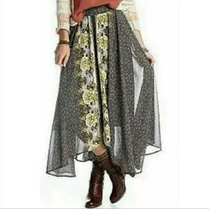 Free People Gray and Yellow Floral Maxi Skirt S M
