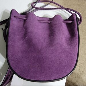 Rebecca Minkoff Lulu crossbody. New with tags. Suede and smooth leather bag. Suede front and back. Smooth leather bottom and sides. Features an adjustable strap, cinch top, and magnetic closure with an interior slip pocket. Blackberry in color (looks like a dark eggplant color). Silver hardware.