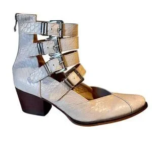 Arider Girl Eleven Croco Heeled Ankle Boots Size 8.5 Boho Country Western Buckle