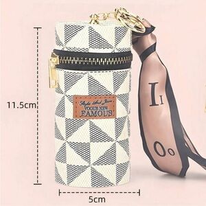 •This trendy accessory can serve multiple purposes, such as a lipstick holder, key fob holder, coin purse, or earphone bag