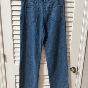 Stylish designer blue wide leg jeans. Perfect for casual wear. Comfortable fit. Inseam 36 inches I love the jeans but I was to petite for them and did not want to tailor.
