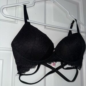 PINK Victoria's Secret Black Lace Criss Cross Detail Bra 34C