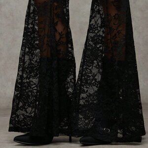 Black Sexy Women's sheer Lace Night Out ultra flared pants