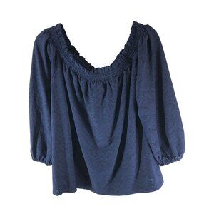 Michael Kors Womens Off Shoulder Blouse Eyelet Floral Navy Blue L