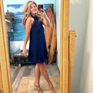💙Lulu’s, Any Sway, Shape, or Form, Navy-Blue Lace Halter Dress, Size Small