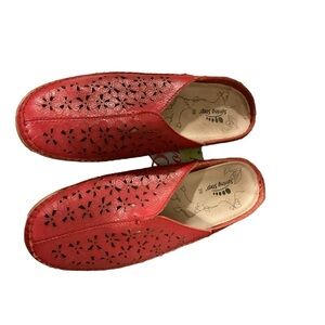 Women’s Spring Step Red Leather Parre Clog Laser Cutout Flowers Comfort Slip On