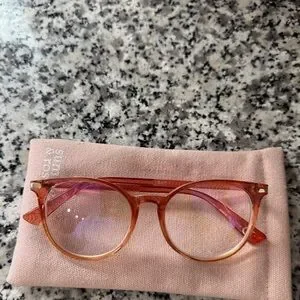 Trendy glasses with a pink case. Perfect for a chic look.