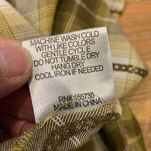 Jane & Delancey large green and white plaid grunge button down with pearl snaps