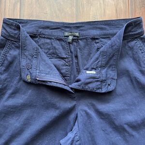 Eileen Fisher Shorts Sz 14 Linen Blend Bermuda Navy Blue Pockets Stretch Comfort