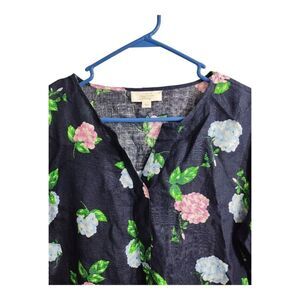 Charter Club Luxury Linen V Neck Tie Sleeve Floral Casual Office Preppy Blouse L