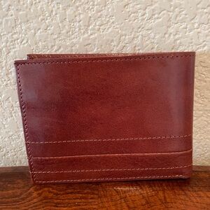 New never used. Elevate your style with the Sergio Tacchini brown leather bifold wallet. Crafted for the modern man, this accessory combines elegance and functionality. Has 3 credit card slots, coin holder with snap closure, bill holder with divider, and some interior side pockets. Soft Italian Cognac leather. No box or dustbag.