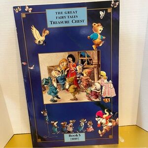 Vibrant treasure chest of 5 different books with whimsical animal illustrations. Ideal for fairy tale enthusiasts. In original box.